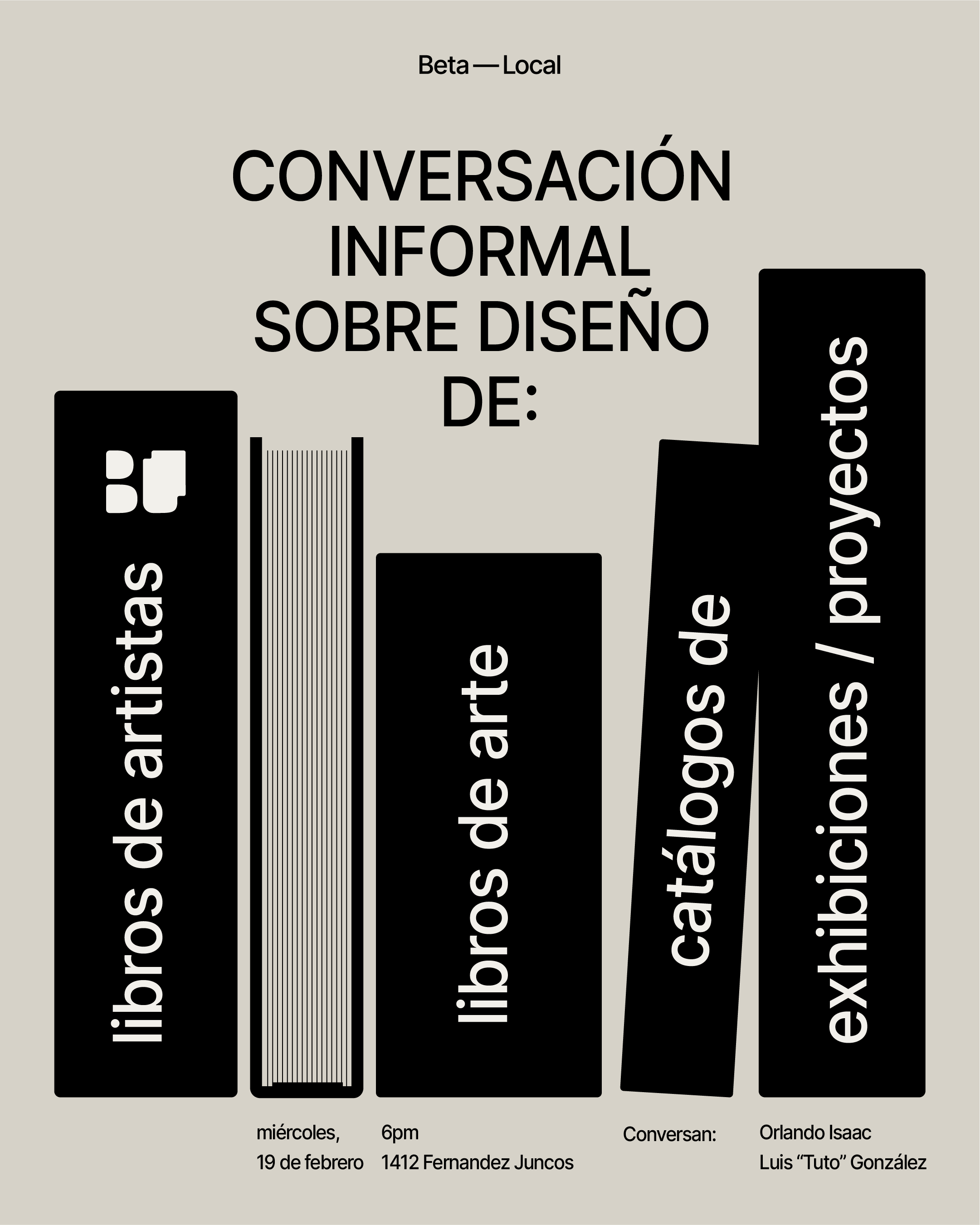 Este miércoles 19 de febrero, nos encontramos en Beta-Local para una conversación informal sobre el diseño de libros de artistas, libros de arte, catálogos de exhibiciones y otros proyectos editoriales.